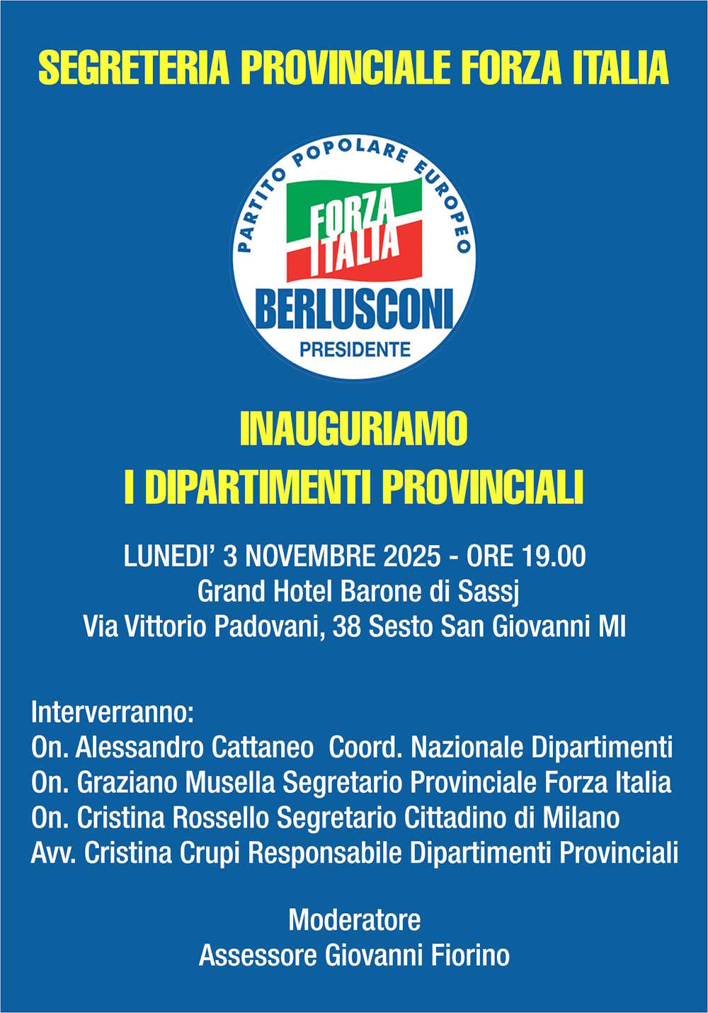 Il Movimento Politico Forza Italia è una associazione di cittadini che si riconoscono negli ideali propri delle tradizioni democratiche liberali, cattolico liberali, laiche e riformiste europee. Essi ispirano la loro azione politica ai valori universali di libertà, giustizia e solidarietà concretamente operando a difesa del primato della persona in ogni sua espressione, per lo sviluppo di una moderna economia di mercato e per una corretta applicazione del principio di sussidiarietà.